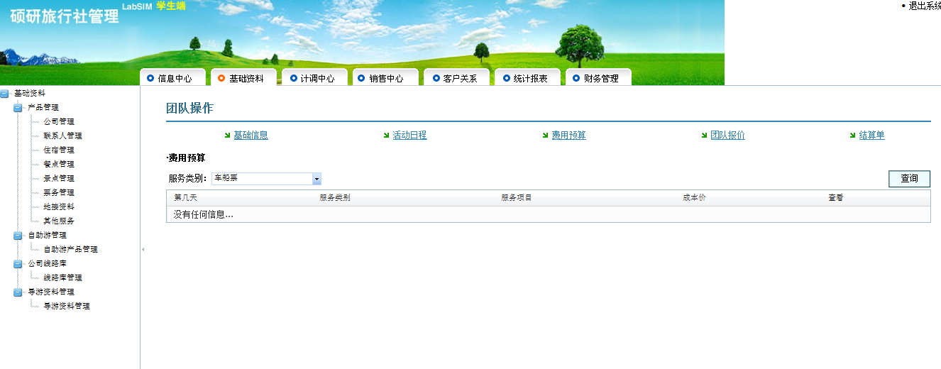(3)細(xì)節(jié)設(shè)計(jì)處處以“教學(xué)”為本:系統(tǒng)中的各個(gè)操作界面環(huán)環(huán)相扣,很好地引導(dǎo)著用戶按照正確的順序和邏輯進(jìn)行操作,這樣既能夠在潛移默化中加深用戶對(duì)于旅行社業(yè)務(wù)的認(rèn)知,又將“教學(xué)”的宗旨充分而淋漓盡致地體現(xiàn)在用戶對(duì)于軟件的使用過程中,可謂一舉兩得。
