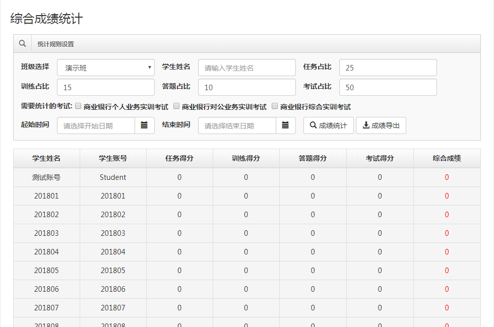 對(duì)注冊(cè)到自己班級(jí)下的學(xué)生進(jìn)行維護(hù)及管理,對(duì)班級(jí)進(jìn)行管理,對(duì)班級(jí)學(xué)生模擬環(huán)境的初始值進(jìn)行設(shè)置,對(duì)學(xué)生進(jìn)行角色輪換及評(píng)分操作,同時(shí)可與學(xué)生進(jìn)行在線交流,可通過公告牌發(fā)送通知,可對(duì)自己的資料進(jìn)行修改。