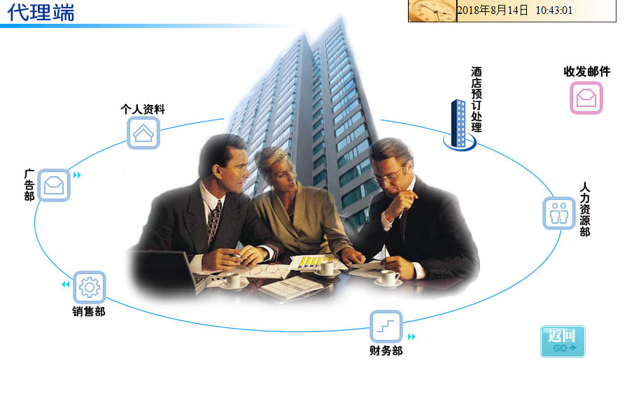 酒店、代理商、消費(fèi)者三個(gè)學(xué)生模擬操作的角色之間實(shí)現(xiàn)實(shí)時(shí)互動(dòng),同時(shí)教師與學(xué)生之間也可通過郵件、公告牌來進(jìn)行溝通。